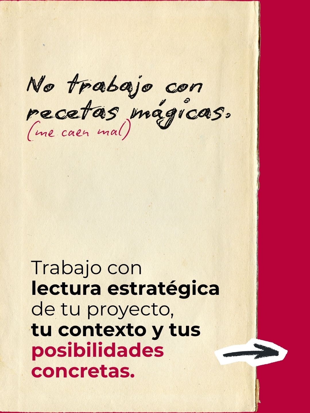 No trabajo con recetas mágicas ni fórmulas prefabricadas.